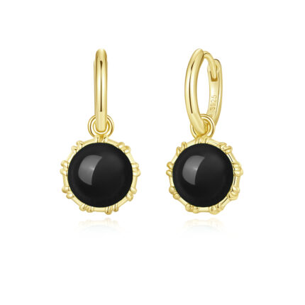 Gold Hoop Earrings with Black Onyx Stones – Elegant Dangling Onyx Jewelry for Women
