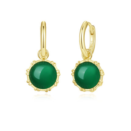 Interchangeable Gemstone Hoops – Gold Floral Earrings with Chrysoprase Stones