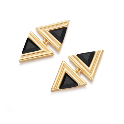 Geometric Gold Triangle Earrings – Modern Black Onyx Inlay Design with Minimalist Elegance