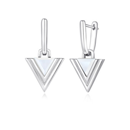 Modern Minimalist Triangle Earrings – Sterling Silver with Crisp Mother of Pearl