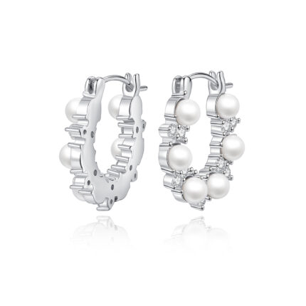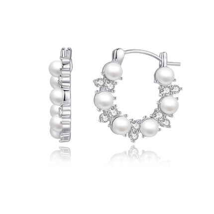 Sparkling Diamond-Accented Pearl Hoops Earrings – Sterling Silver Jewelry