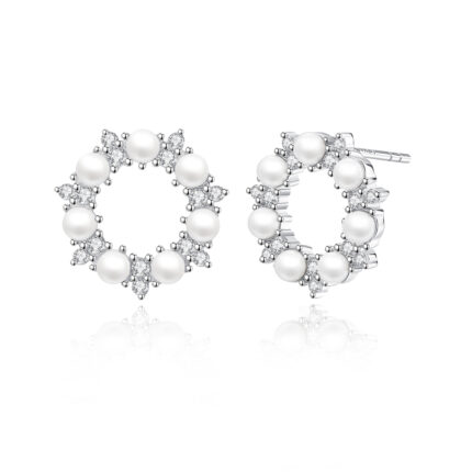 Sparkling Crystal & Pearl Stud Earrings – Sterling Silver Setting