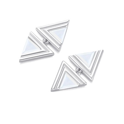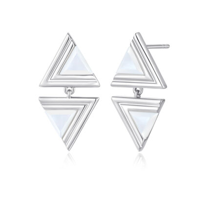 Sterling Silver Double Triangle Stud Earrings – White Mother-of-Pearl Inlay
