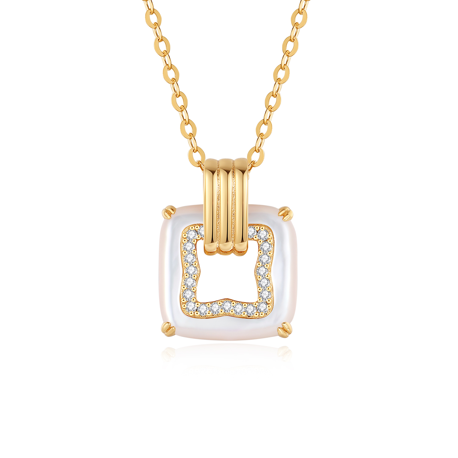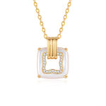Home Shop by Collection Pearl&Shell 14K Gold Square Pendant Necklace with Mother-of-Pearl & Diamond Border – Elegant Minimalist Jewelry
