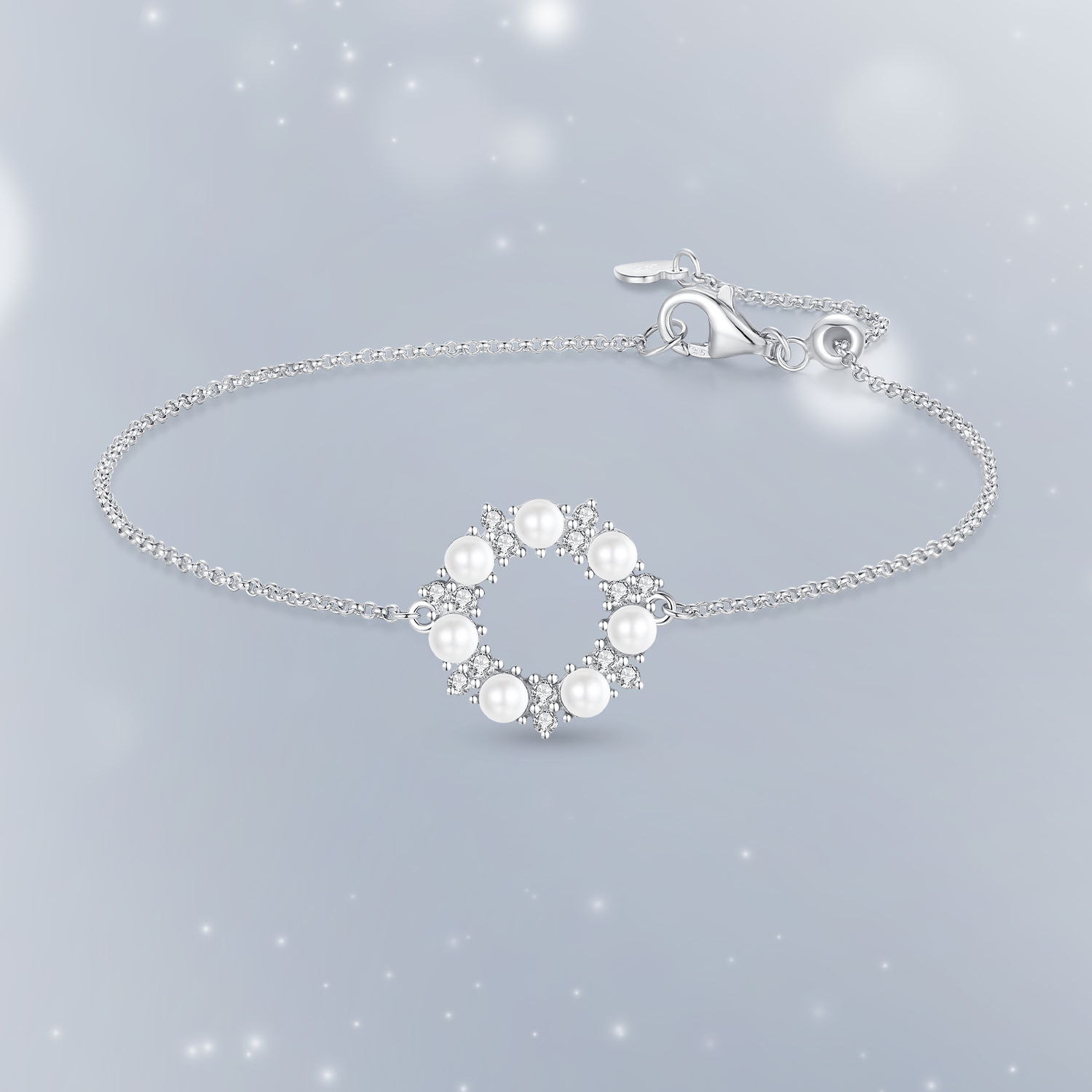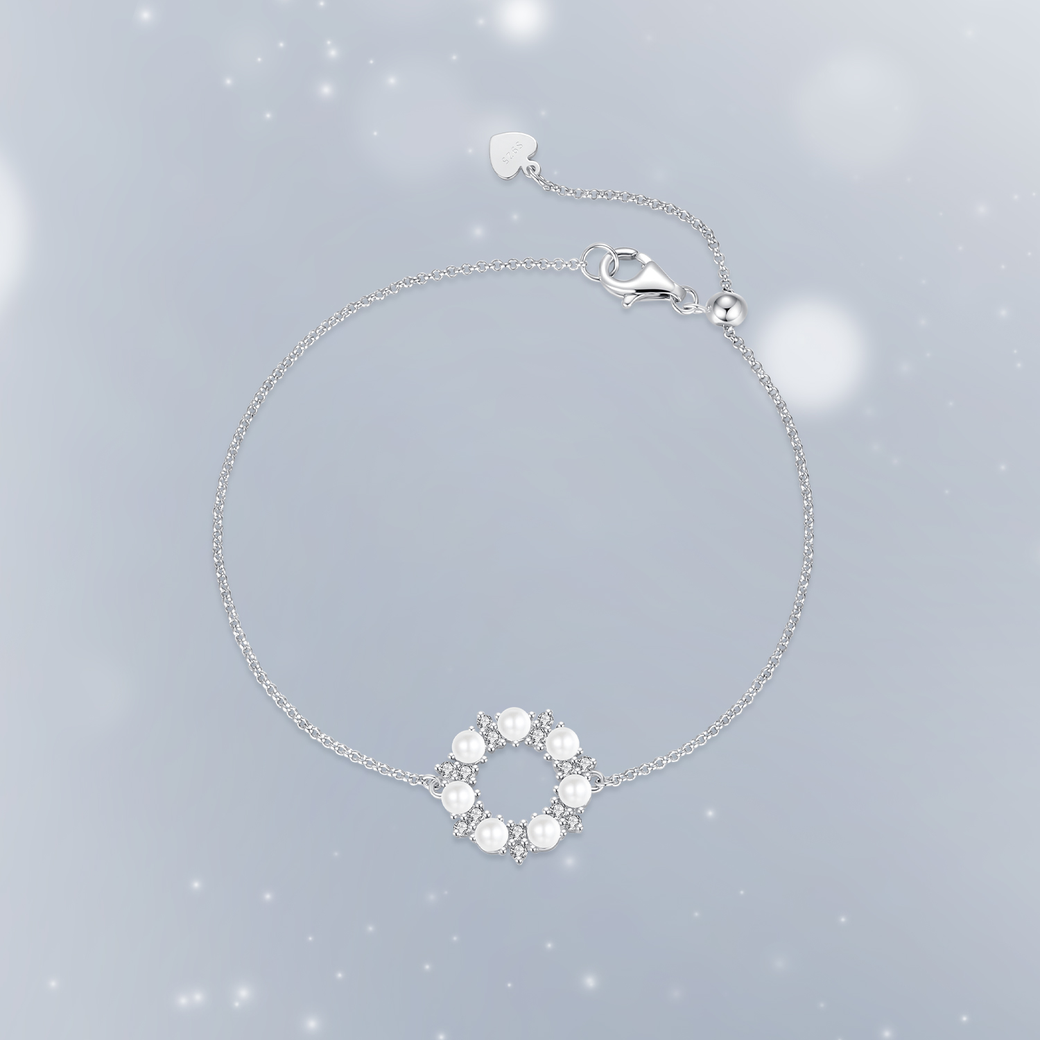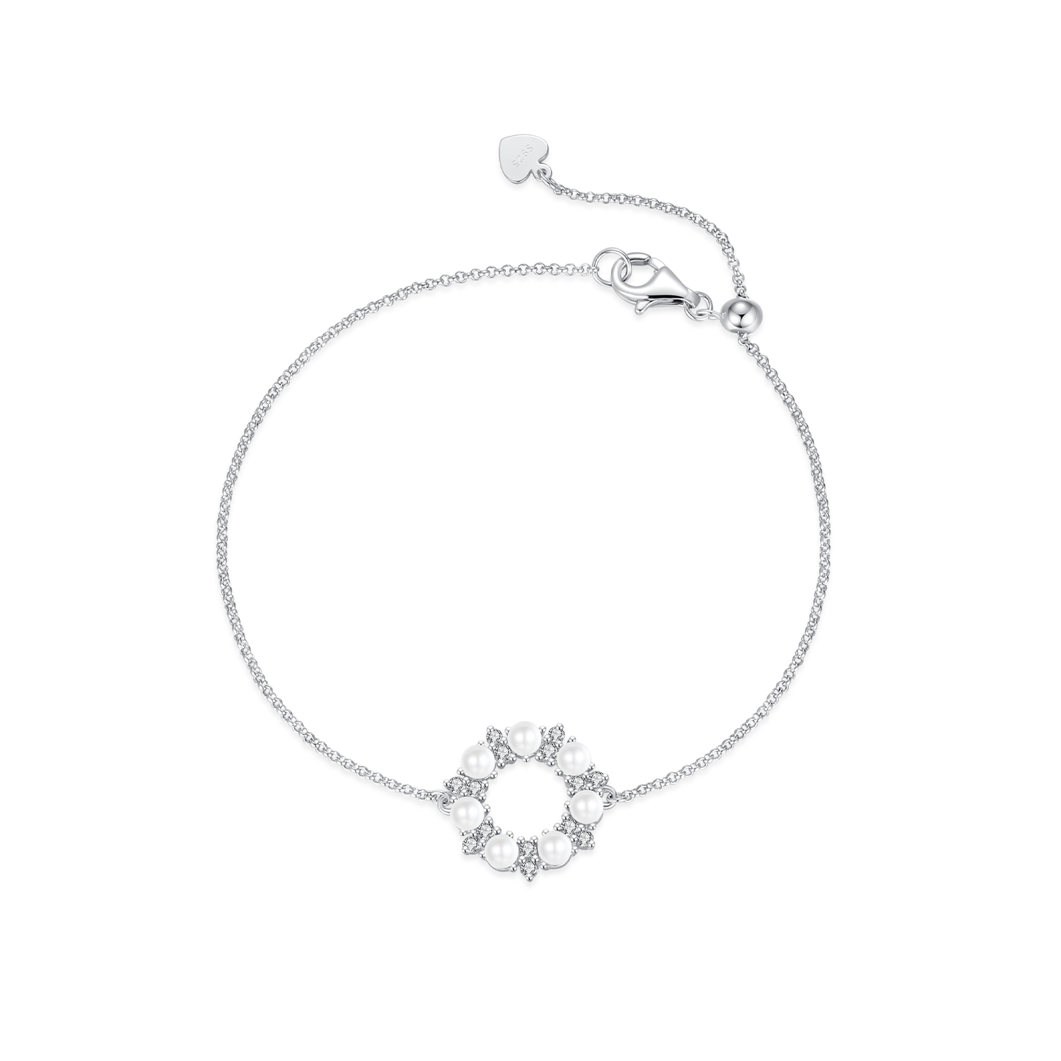 Home Shop by Collection Pearl&Shell 925 Silver Bracelet with Floral Halo Design – Handcrafted Fine Jewelry
