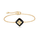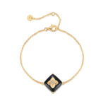 Be the first to review “Black Onyx Gold Bracelet – Elegant Clover Pendant with Sparkling Diamond-like Stone Center” Cancel reply