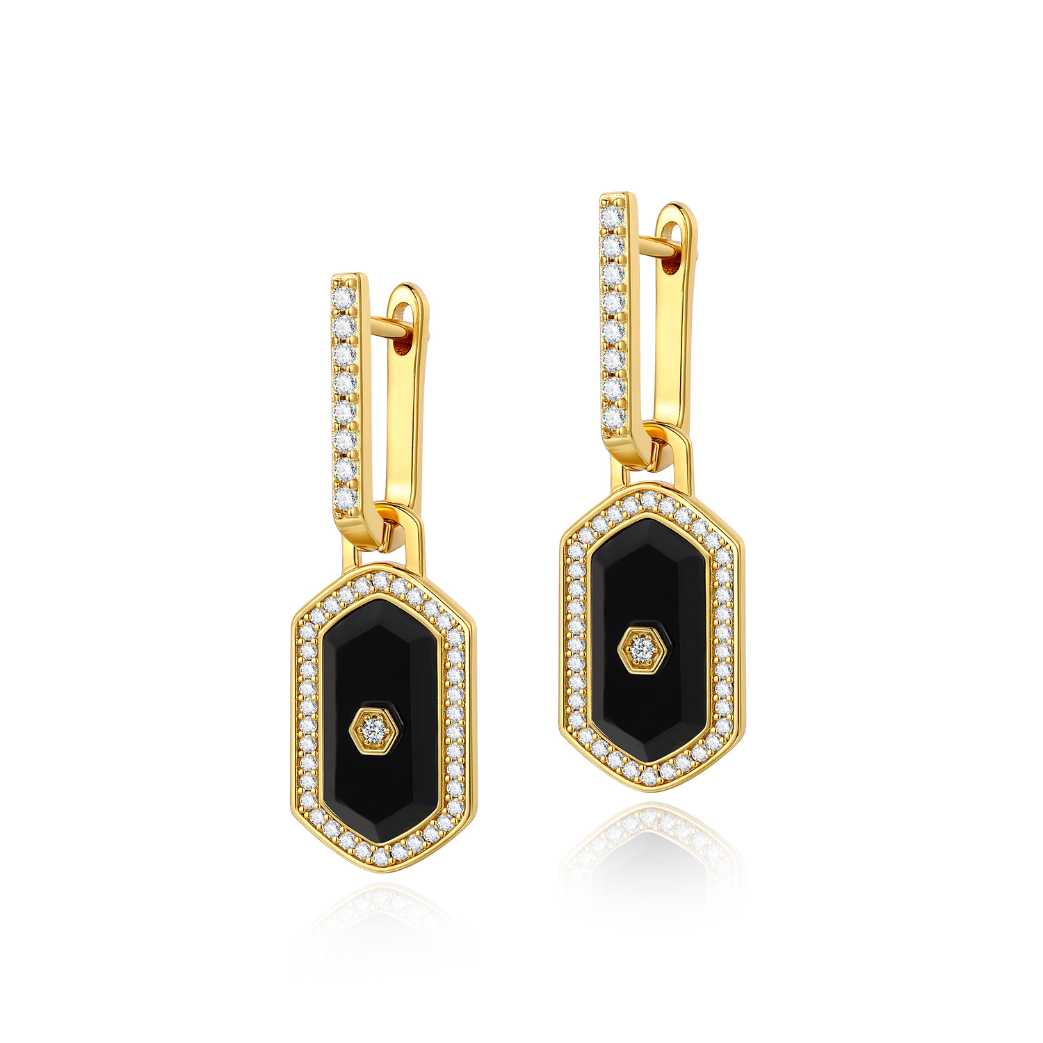 Hexagon Black Onxy Earring